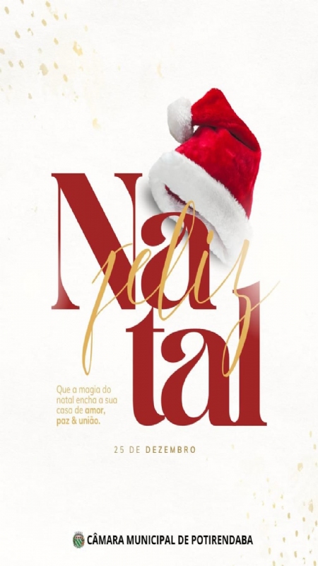 A Câmara Municipal de Potirendaba deseja a todos um Natal de paz, união e esperança. Que o espírito natalino renove a fé, fortaleça as famílias e inspire solidariedade.